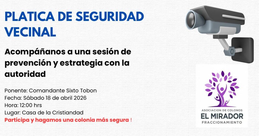 Chat únicamente para avisos importantes y de interés para colonos del Fraccionamiento El Mirador.